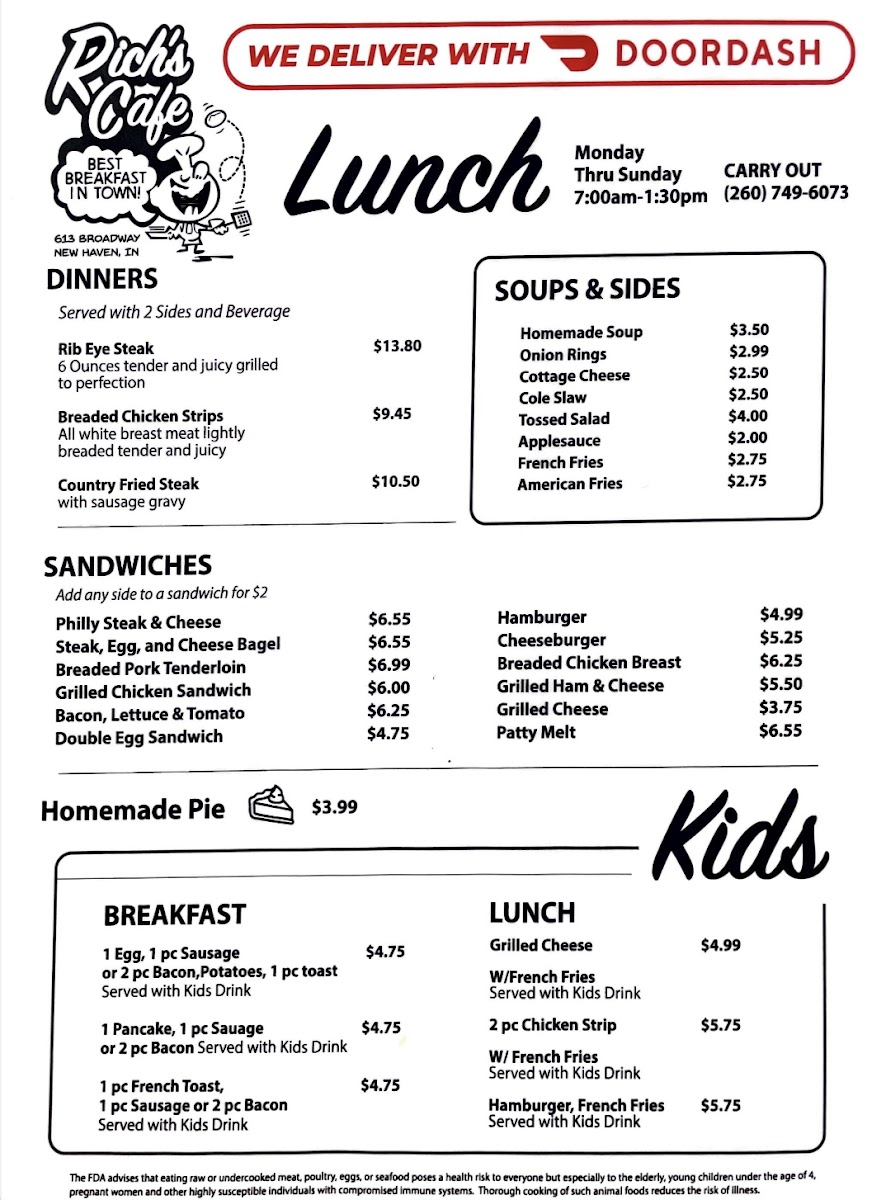 Welcome to Rich's Cafe New Haven, a gem nestled at 613 Broadway St, New Haven, IN. This delightful cafe is not just a place to grab a meal; it’s a welcoming dining experience where the aroma of freshly brewed coffee fills the air and the sound of laughter from satisfied customers resonates. As you step through the doors, you'll be greeted with warmth and hospitality that makes you feel right at home.